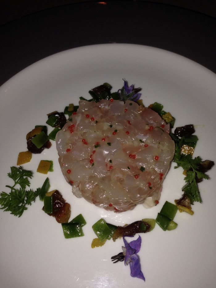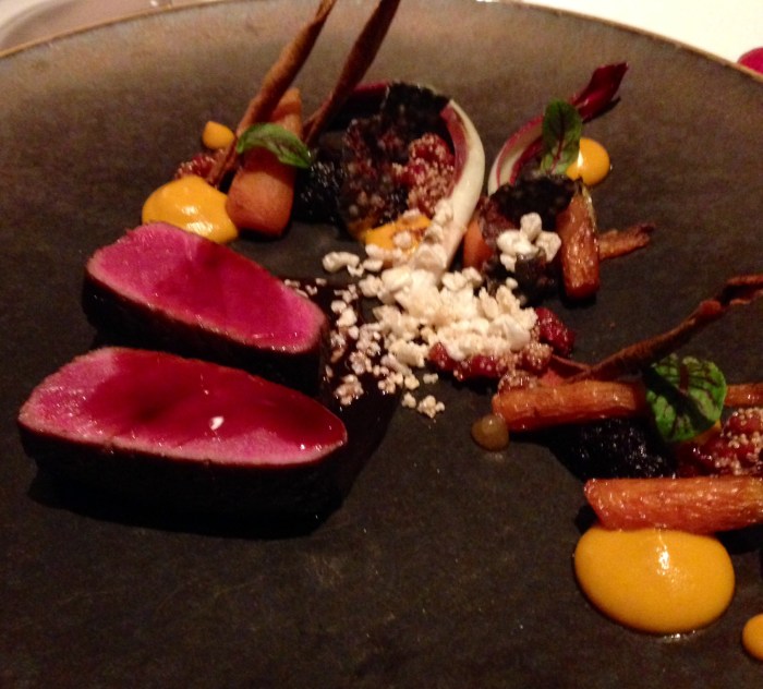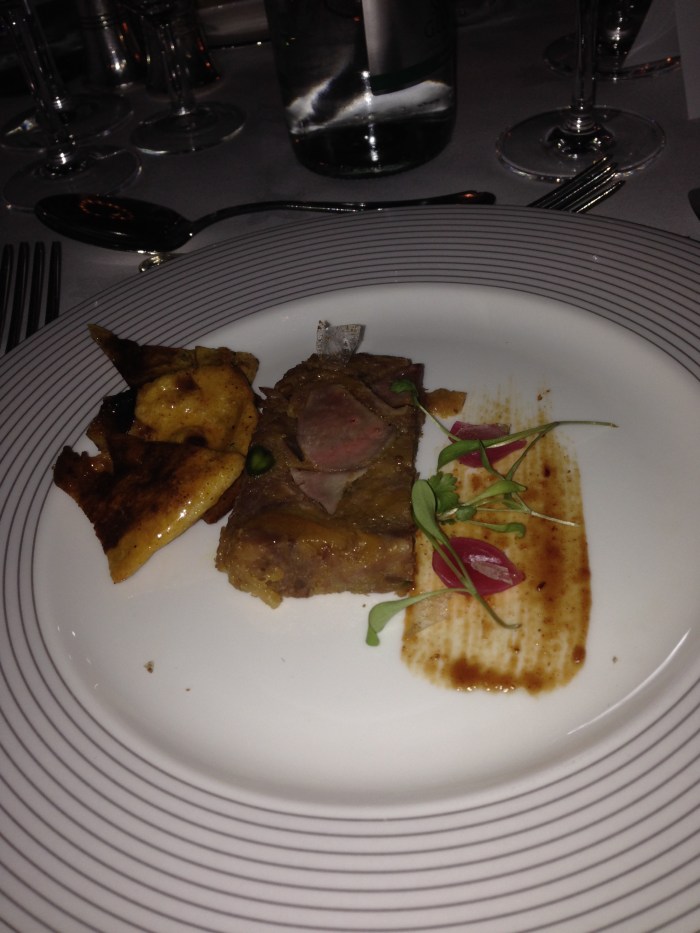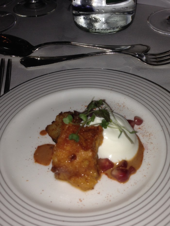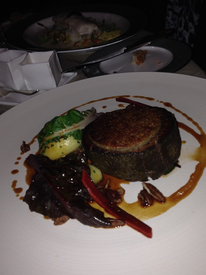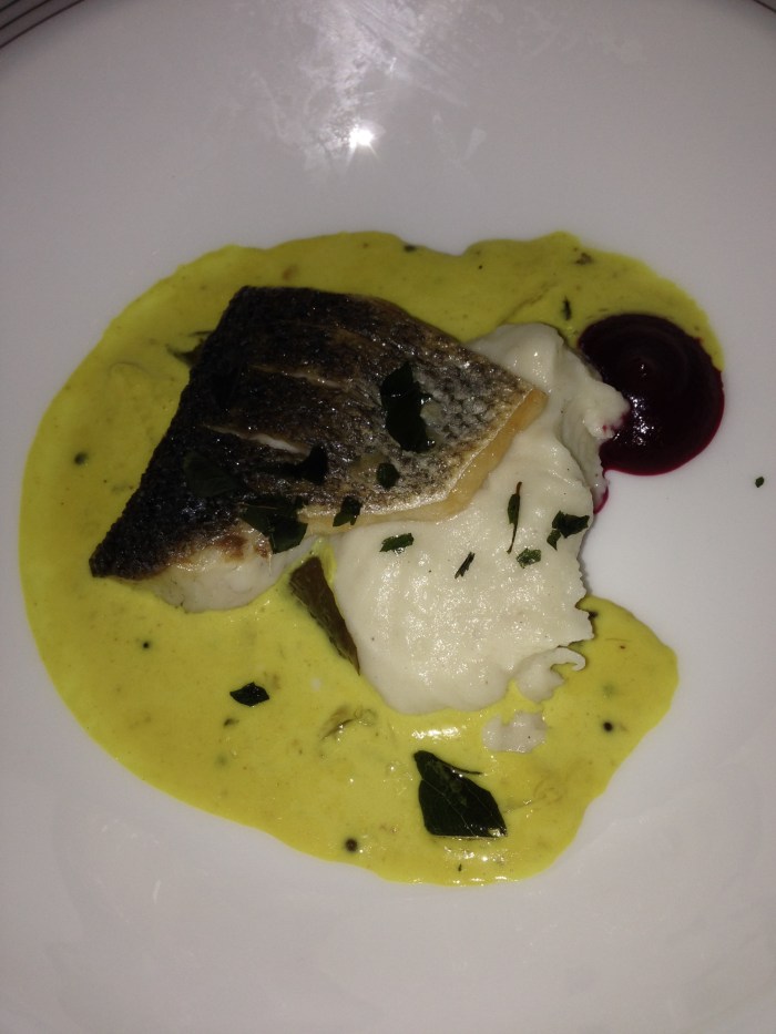 So for starters, we chose the Fois Gras with the beetroot and the Sweet breads. The fois Gras was amazing actually with what looked like a small beetroot, which was in fact the fois Gras, which I presume was wrapped in a coating of beetroot, , absolutely delicious . The sweet breads were equally good, looked beautiful, decorated with small flowers.