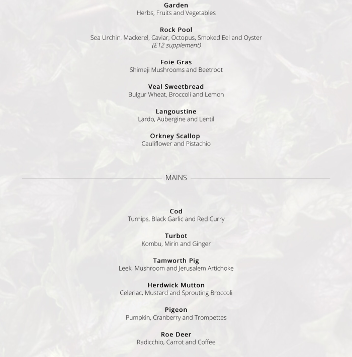 The menu for such a nice restaurant is £55 for three courses and is innovative. Although as you can see from below, it needs a little translation or understanding!