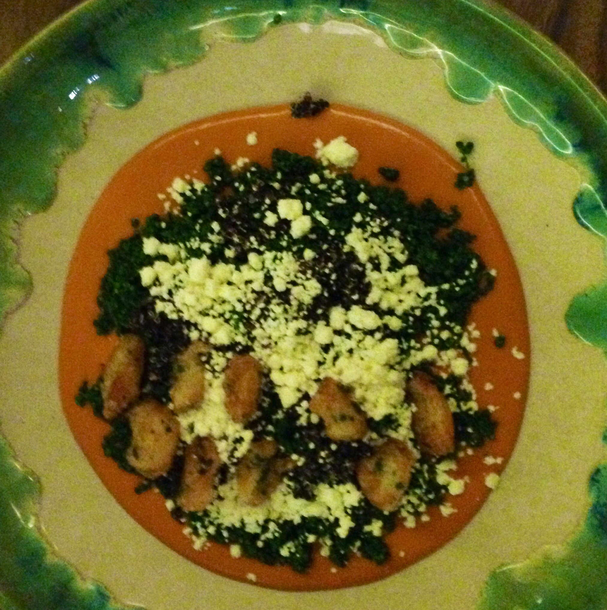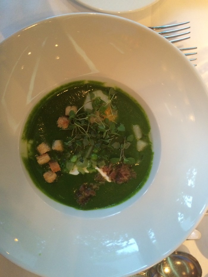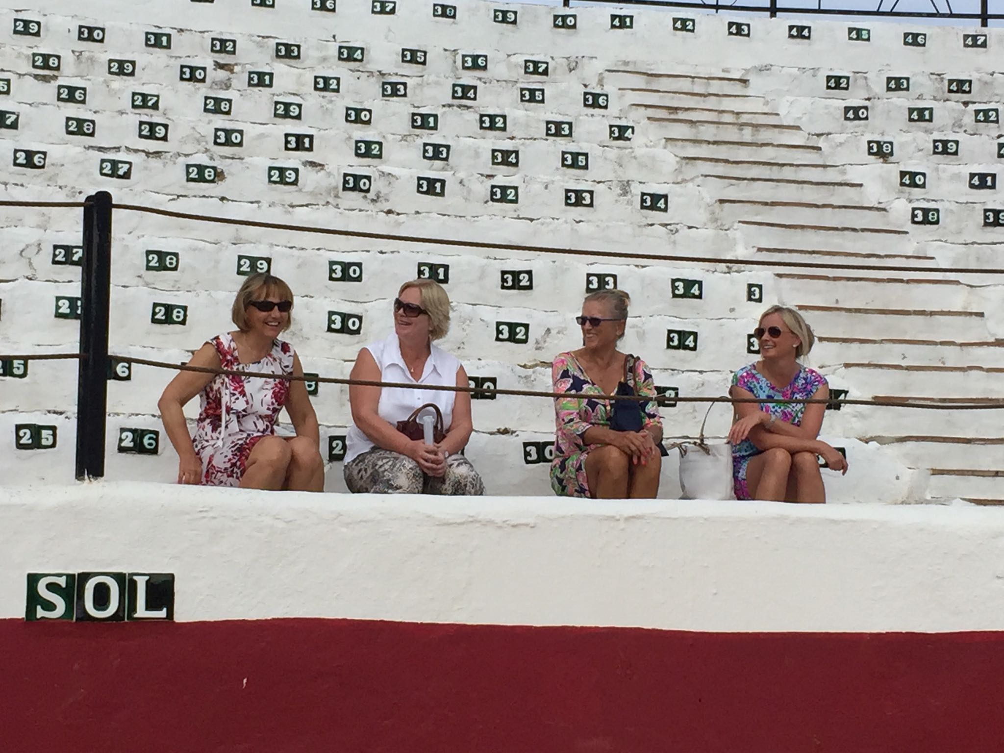 The next night, after a day of golf,me de-camped to Mijas Peublo, a really pretty mountainside town, complete with its still functioning Bull Ring and magnificent mountain to sea views. Here we ate at a small restaurant, taking over the complete terrace, I pitied anyone living near by! Our dinner consisted of, cheese croquettes, chorizo sausages, Andalucian Gazpacho, and either fish or roast baby lamb, followed by a soufflé of Grand Marnier. This was very proudly presented by the head chef. It was a family run business , and good honest food, all of which was very good, but for me the soufflé was perhaps a bit ambitious for such a large group, some of it was not really cooked and for my taste way too sweet.