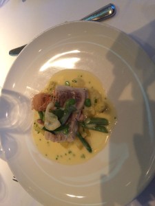 We were served an assortment of Tapas to start with which included Pizza, Vitello Tonnato, Iberian ham with manchego cheese and Prawns Pil-Pil, main courses were a choice of Rigatone, Sea Bass or Escalope in Lemon Sauce and for dessert, either Tiramisu or Fruit salad. General consensus was all was good, I did not see many empty plates!