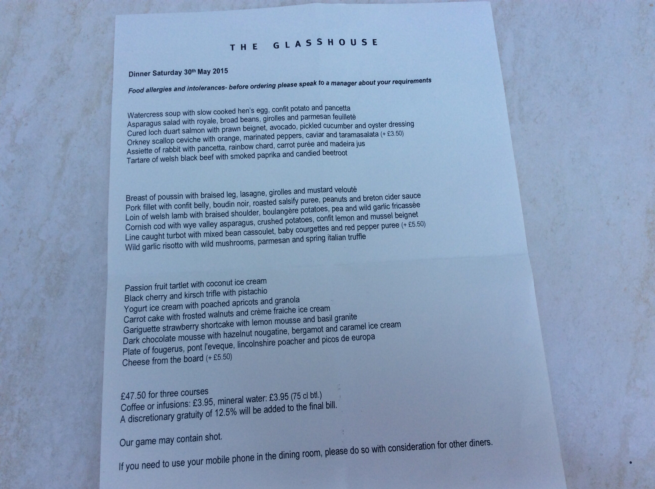 The mousse was not a mousse at all but more likely melted Ice Cream and for those who chose the Banoffee pie ( weirdly again) said it too did not live up to their expectations. Service was fine but zero for atmosphere, ( we were the only ones there, did we scare everyone else away?) However, a huge thank you goes to our Lady Captain who took on the task of organising this trip, which I have to say went really well, I wish the same to next years captain. Where are we going??? watch this space.
