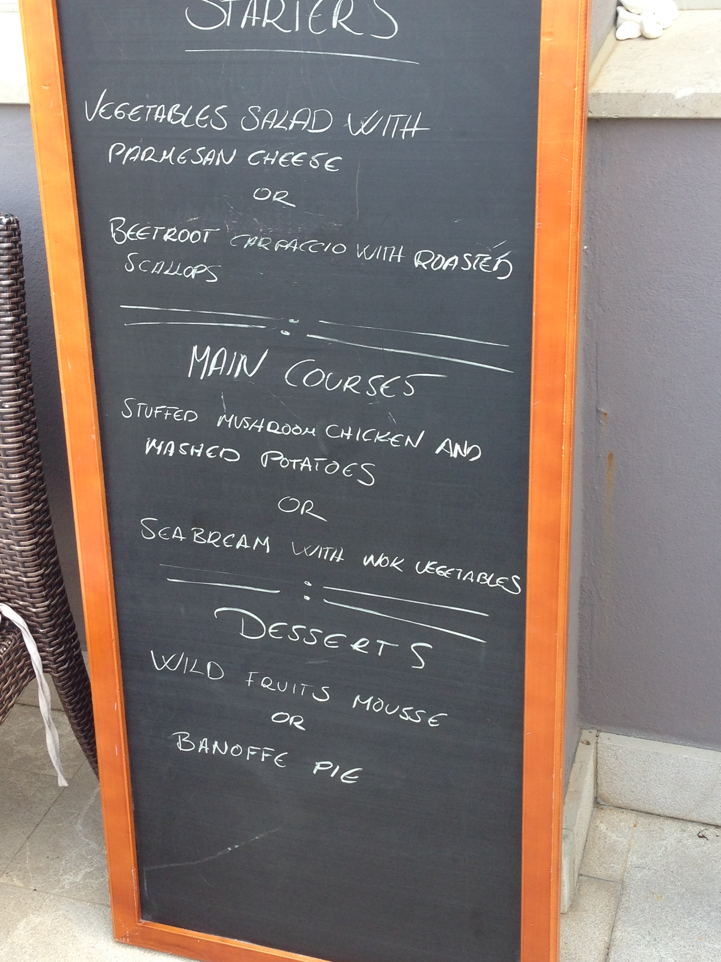 Our final night was spent in much more sophisticated surroundings at a restaurant called Avanto, in Mijas Playa. Overlooking the sea with clean crisp table cloths and napkins, it has all the makings of a good restaurant. However I am afraid it did not live up to expectations, it ha recently changed its name, maybe the chef/owner has changed as well. Looking on Trip Advisor , has confirmed my opinion, as the majority of reviews are not very positive. We had a set menu, understandably given our number, with a choice of two on each one. I chose the Beetroot carpaccio with roasted scallops, but flavoursome it was not, the Sea Bream with Wok vegetables was fine, just not very exciting, and the desserts were a real disappointment.