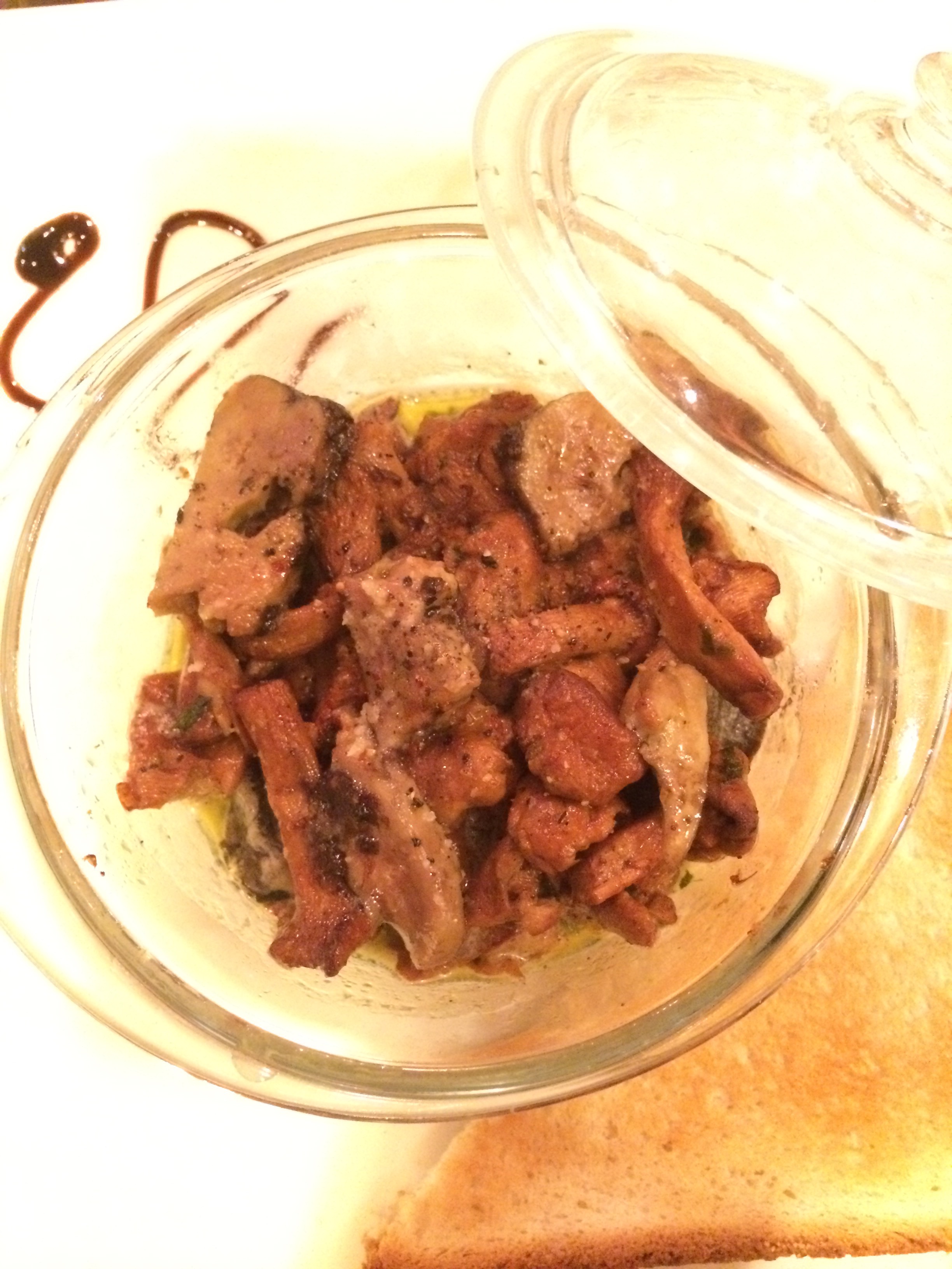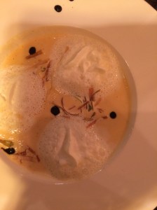 we chose, between us, a soup du jour, which was creamy winter vegetable with a cream and lard chantilly, Lard? Yes whipped cream mixed with lard! Spends awful, but in fact I would never had guessed that ingredient, on a blind tasting test!winter vegetable soup with cream and lard chantilly a scallop risotto and escargot served in a small casserole with fois gras and chanterelles.