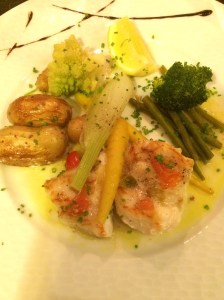 Monkfish with vegetables I am hoping they will still have that on the menu, when we go again next week! No room for dessert except, our young skinny friend who chose the Café Gourmand, which was more than enough for two and her husband duly helped out.