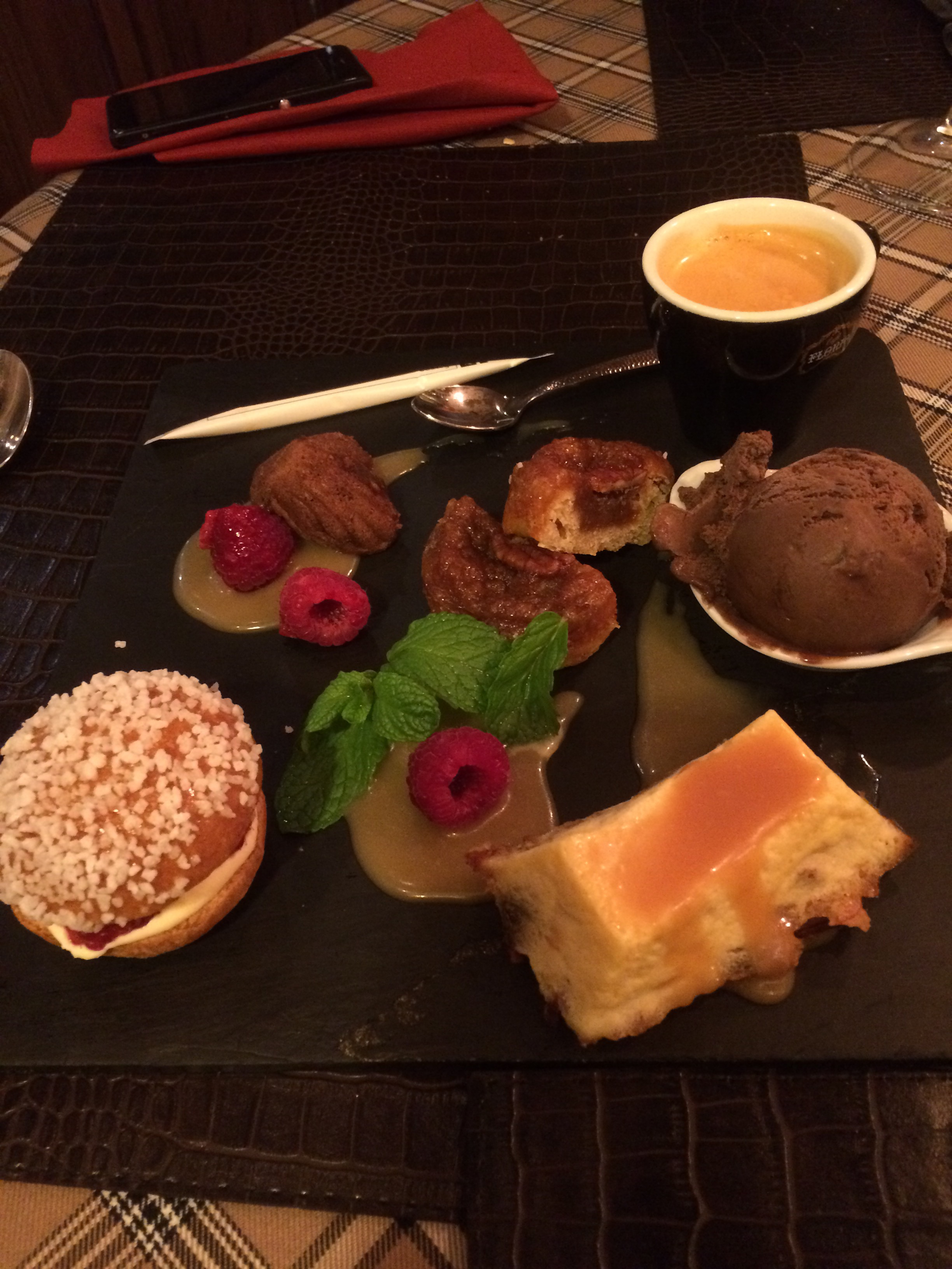 The Café Gourmand! enough for 2 So chatting to Madame before leaving, she said, “bones vacances” I informed her that our young friends worked here! Oh she replied that is why she speaks such good French! I am French, was the reply! But Madame was nonplussed by this! Of course, as I said she is a bit dotty! But very nice all the same!