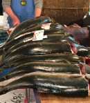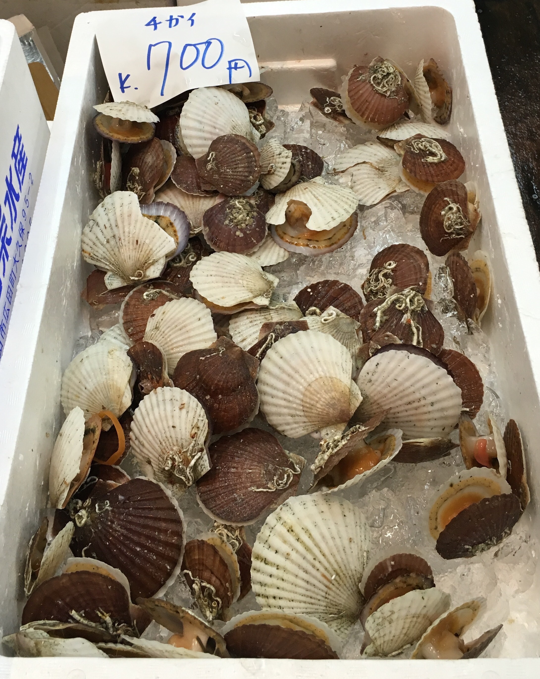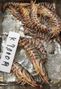 Tsukiji Market (築地市場, Tsukiji Shijō) is one of ten wholesale markets that deal with the distribution of fruit, vegetables, meat and fish for Tokyo. The Tsukiji Market is one of the world’s largest fish markets, handling over 2,000 tons of marine products per day. Rumour has it, that the market, will move out of the city to a new site, later on this year. The market has attached to it, a fruit and vegetable market as well. The tuna auction takes place here also and any visitor has to apply at the auction office, early in the morning, only 120 visitors are allowed each day and they are also divided into 2 groups, the first being admitted at 5.25 and the second at 5.50. It reminded me very much of Billingsgate in London ( smaller) , though without the banter ( watch yer back darlin!) The other difference being is, in London the porters skilfully manoeuvre large metal trolleys around, whilst in Tokyo it is motorised carts,the porters, constantly beefing at all who should dare to get in the way ! Of course there is lots of Tuna but besides that all sorts of fish, fresh, dried and frozen! Some recognisable and some not ( should have come with my worldwide fish guide). One interesting item was Octopus eggs. Apparently they are intelligent animals and are protected within the EU. The male dies soon after mating and the female guards her eggs for up to 53 months ( depending on species) and then she dies! No fun being an Octopus then! So was very interested to see the eggs on sale, but am really not sure what to do with them!