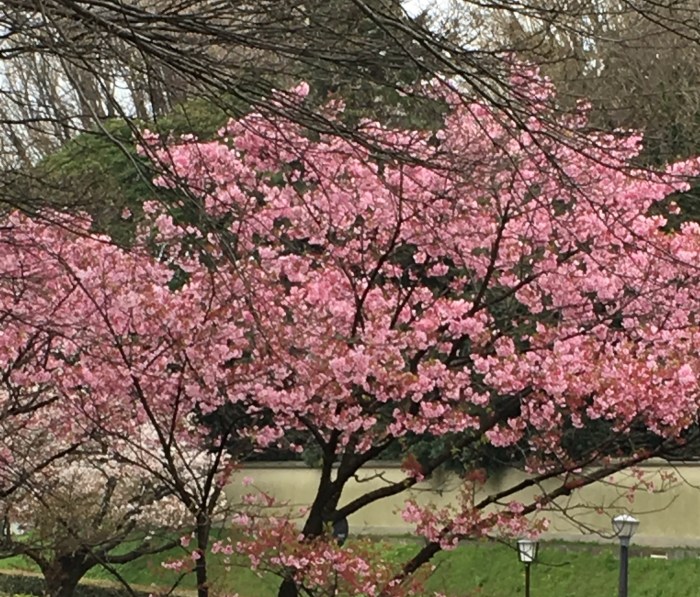 Throughout Japan, there are cherry trees at this time of year and depending on your location the blooming time will vary. For example in the mountainous region it will be later than in Tokyo. There are over one hundred varieties of cherry trees, ranging from white to pale pink to dark pink and even to yellow and green. Most of them have five petals but some have 10 or even twenty. One of the most beautiful is the Shiarezakura, the weeping cherry. Also in bloom at this time, of course are plenty of other spring flowers , but as is usual , blossom time brings rain and wind! After all they are not just there for our enjoyment!