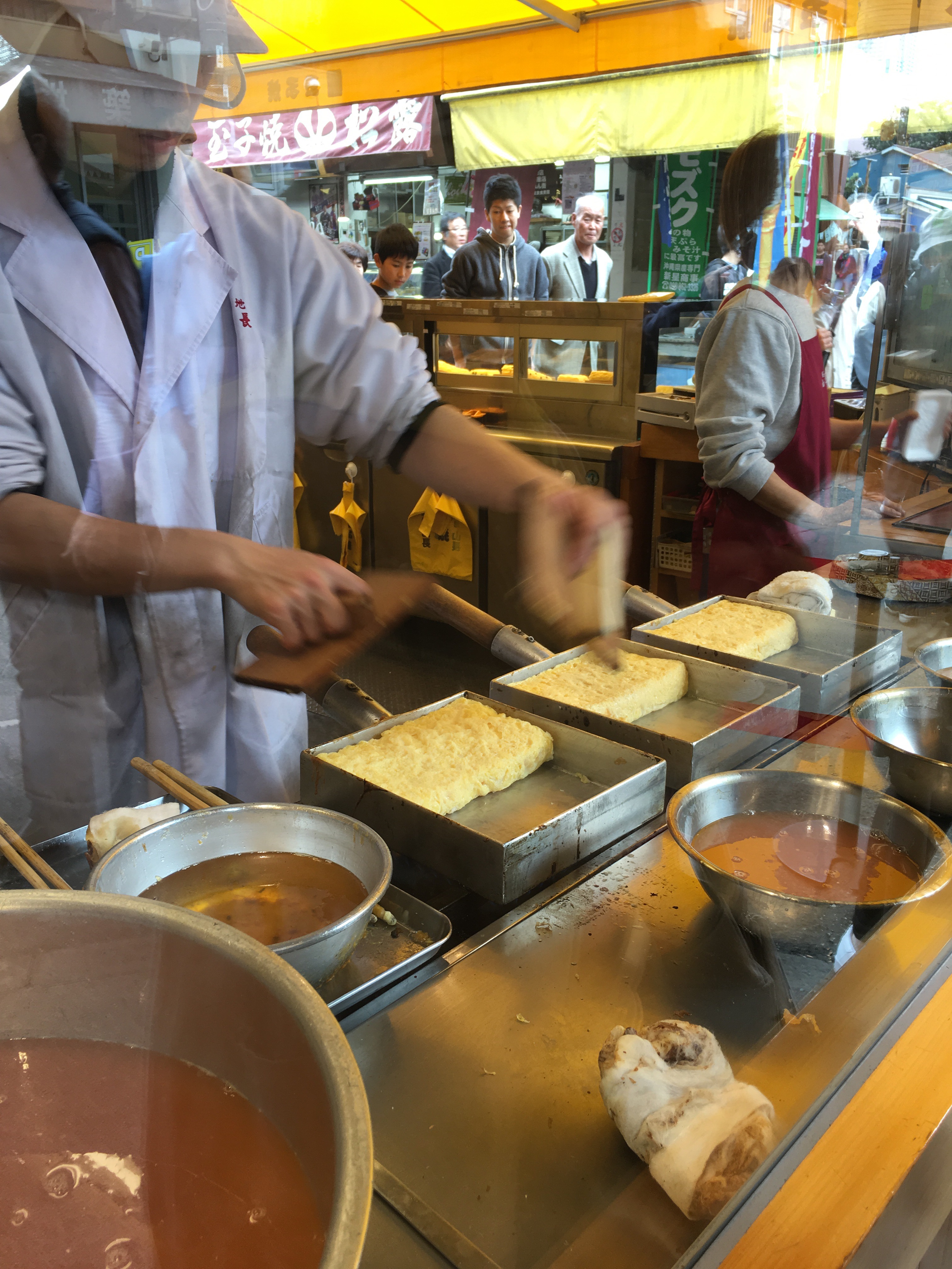 After a very interesting morning looking at Fish we stopped for lunch, also in the the TSUKIJI area, some of us had Sushi whilst others Tempura or baked fish, but no matter what, all were very good. I was tempted to try the Omelet on a stick from a street vendor, ( but had just had lunch). Interestingly they make it in a rectangular pan, quiet thick, and then cut it into lengths and put on a stick! Very innovative, I think I just need to buy one of those pans!