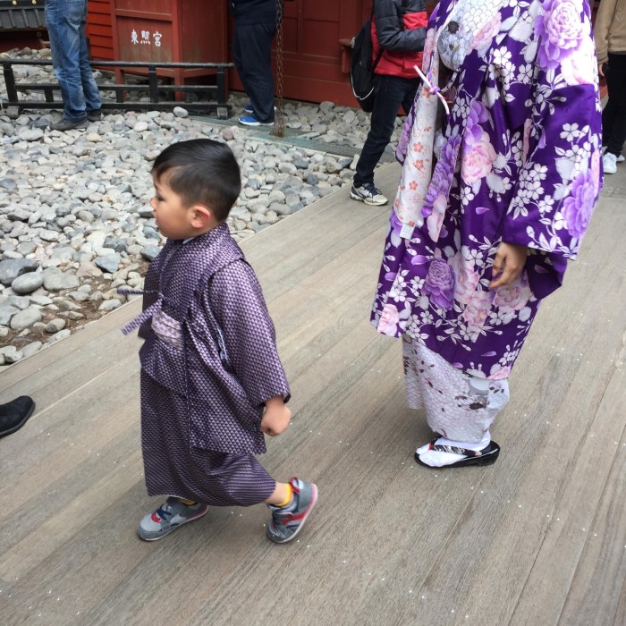 We started our day at a rather chaotic bus station, where there were buses and tour guides departing, everywhich way ! We boarded our bus and set off for a rather long bus ride to Nikko. Nikko is famous for a Toshugo Shinto shrine built in 1617. It is also famous for a Botanical garden , which has according to Wikepedia over 2,000 species . There is also a 35 km avenue of 13,000 Cedar trees, ( listed in the Guinness book of records )which was established over 400 years ago when 200,000 trees were planted . The Cedar tree is the national tree of Japan. The entrance to the shrine surrounded by Cedar TreesThe main gateLoggers at work on one of the 400 year old treesPart of the shrine elaborately decorated The Cutest boy in town Apart from the impressive shrine, we had lunch at a road side café, which catered just for the bus loads of tourists, which were carefully stage managed by the various tour guides, so that not everyone descended at once. What was quiet amazing was that we