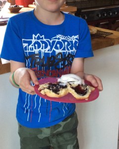This week saw several newbies on our table, Quiche, courtesy of Miss Tess, who loves quiche and Tarte abondance , which is more or less a cheese quiche. Scones courtesy of Miss Tess and Young Mr Alfie , both tried scones and jam and cream on the BA flight over to Geneva last week, and decided they were a hit, and the final one was cantaloupe melon ice cream.Tess at the age of 6 loves to cook, and is good at it, Alfie (8) thinks he likes to cook, but does not like getting his hands dirty!