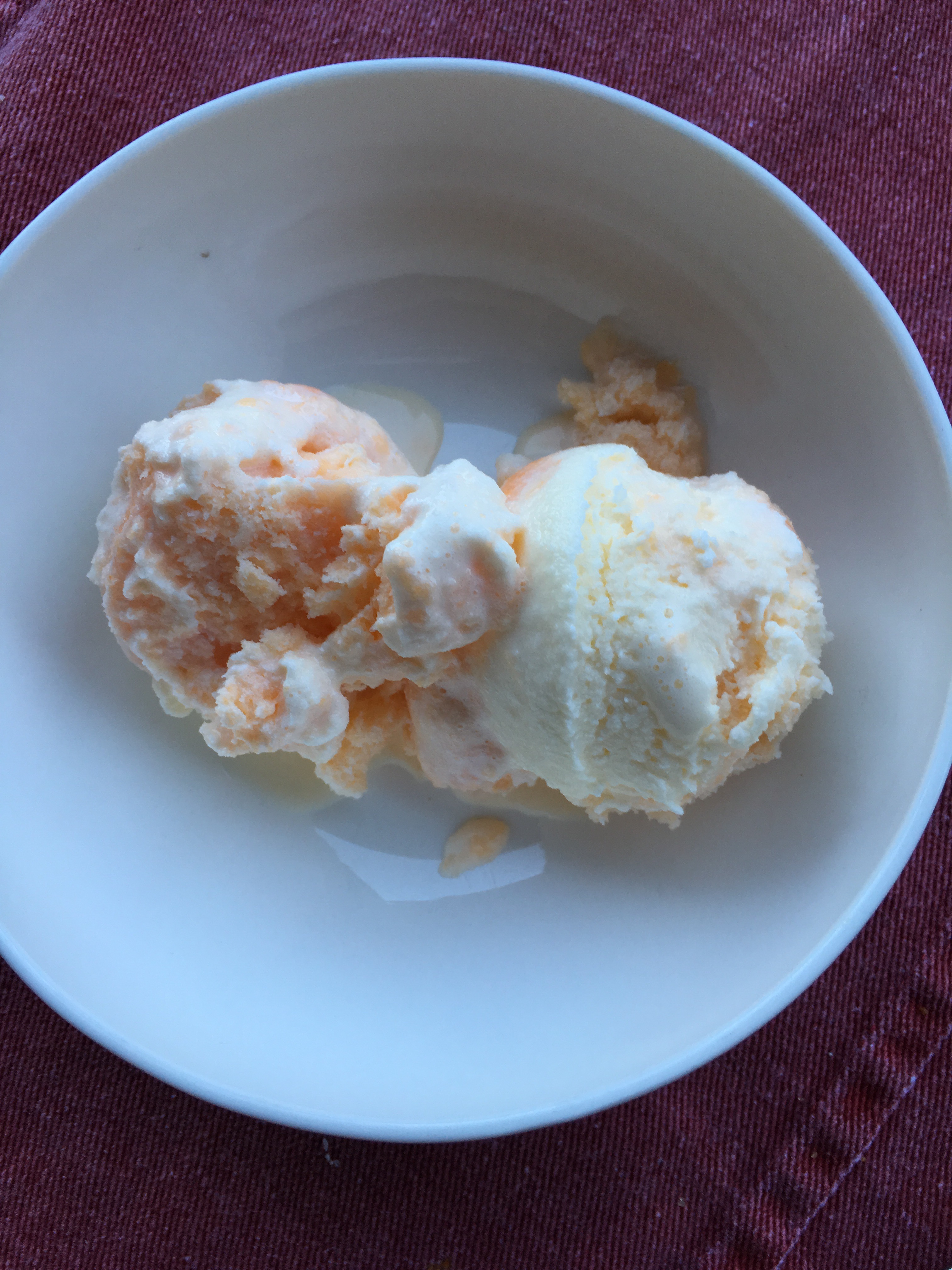 For our ice cream making the choice of flavour was a bit difficult. They both quiet fancied “Cherry Garcia” until Alfie read that it has chocolate in, he does not like chocolate, and Tess fancied Chocolate chip cookie dough, but again the chocolate issue.. So how about Oreo, umm not really, Oreos are hard to find here in France, Vanilla fudge chunk? Well it would mean having to make our own fudge, coconut? Kit Kat ? Toblerone? The list was endless, we finally settled on Canteloupe Melon. This might sound rather odd, but I have to say the result was excellent !