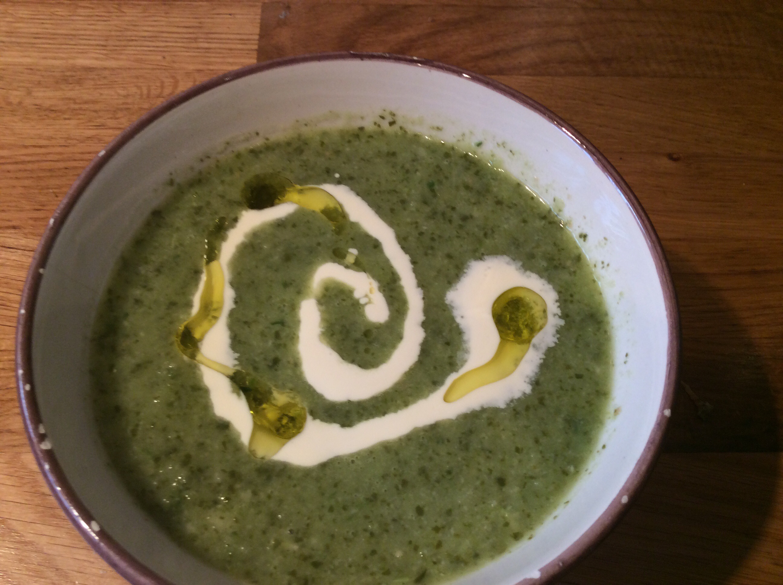 4. Run a knife round the avocado, twist apart, remove the stone and spoon the flesh into the blender.Taste and adjust the seasoning. Chill and serve with a swirl of olive oil and a swirl of plain yoghurt.