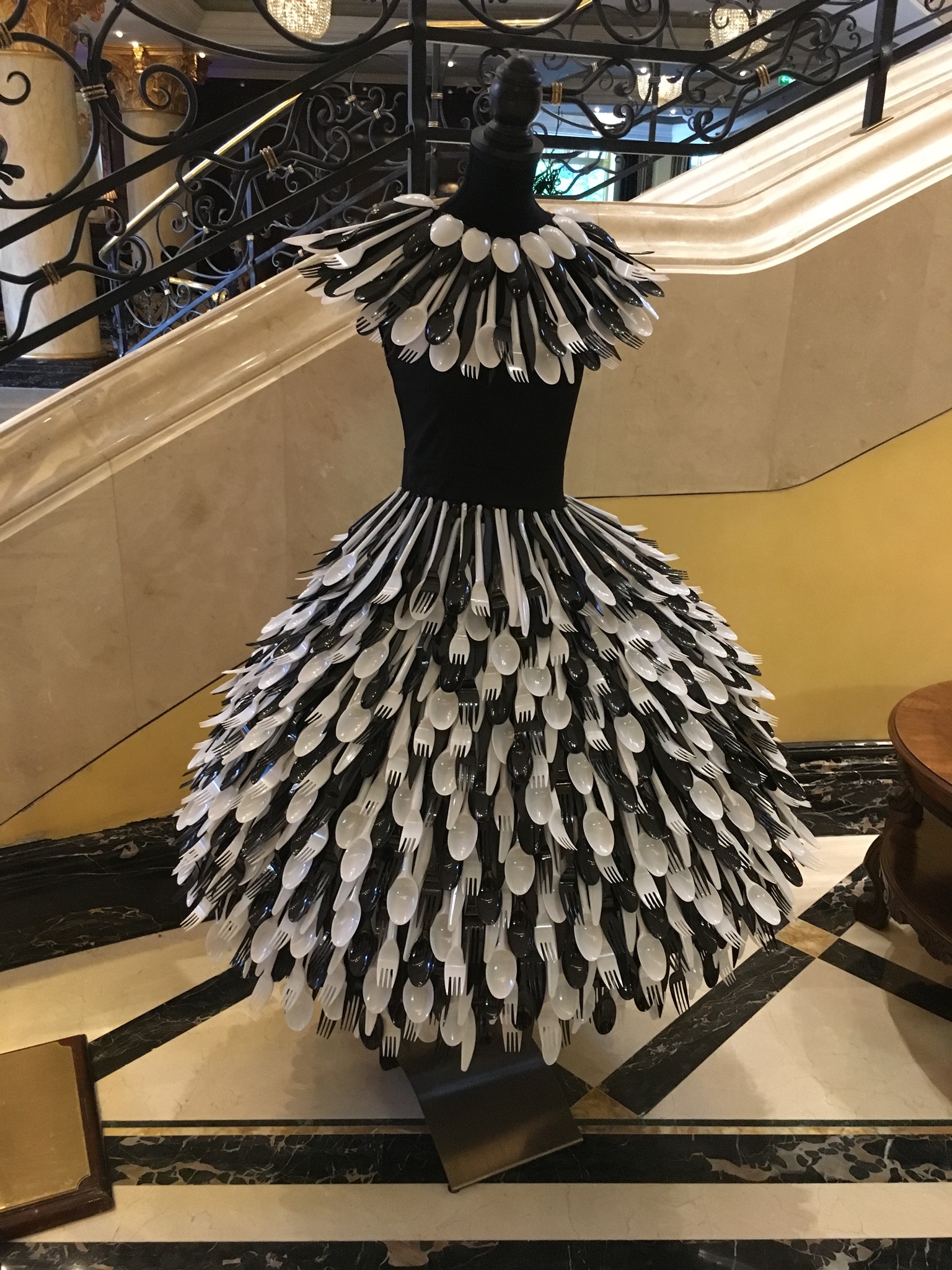 A Dress made out of plastic spoons
