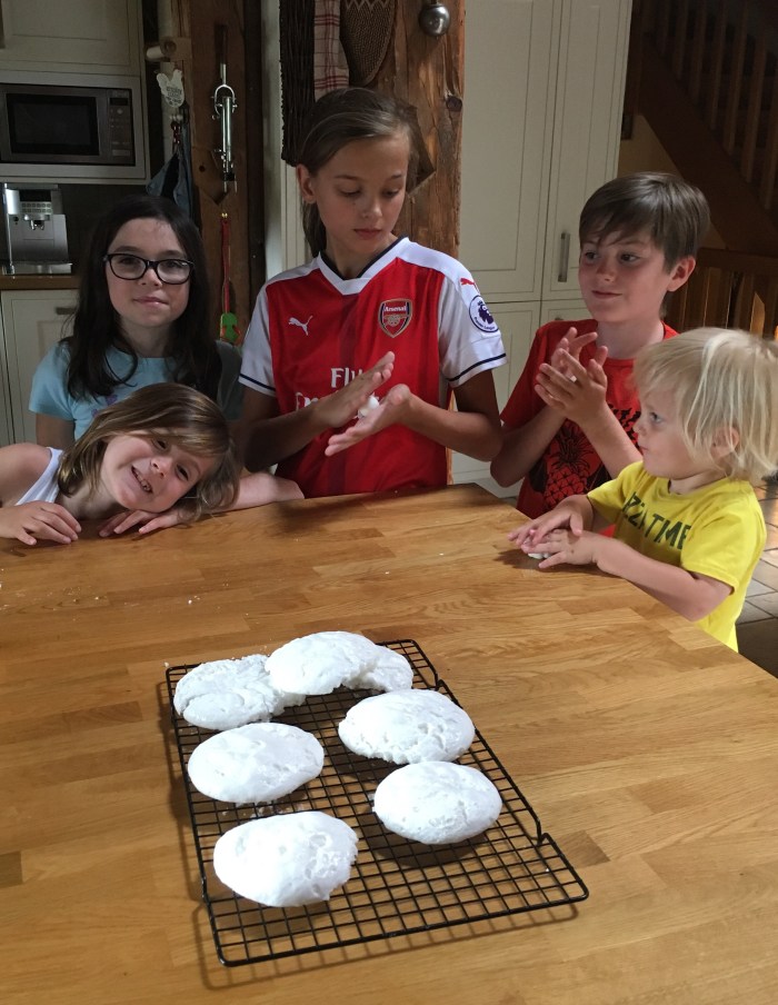And so, onto today, today was the turn of the Eton Mess. As written about in the last blog, simple as can be. Sophia, the eldest child had made Meringues with her dad in the trade way, but was she surprised by this method, so much so, that she zoomed across the street and promptly made some more, which her grandad in particular really liked. Her Dad on the other hand sent me a text in the middle of the night about the sticky fingers everywhere! What else does he expect !