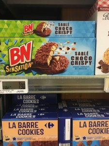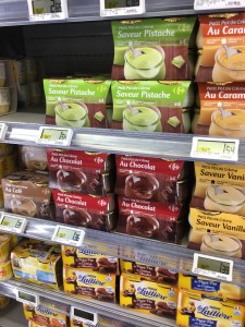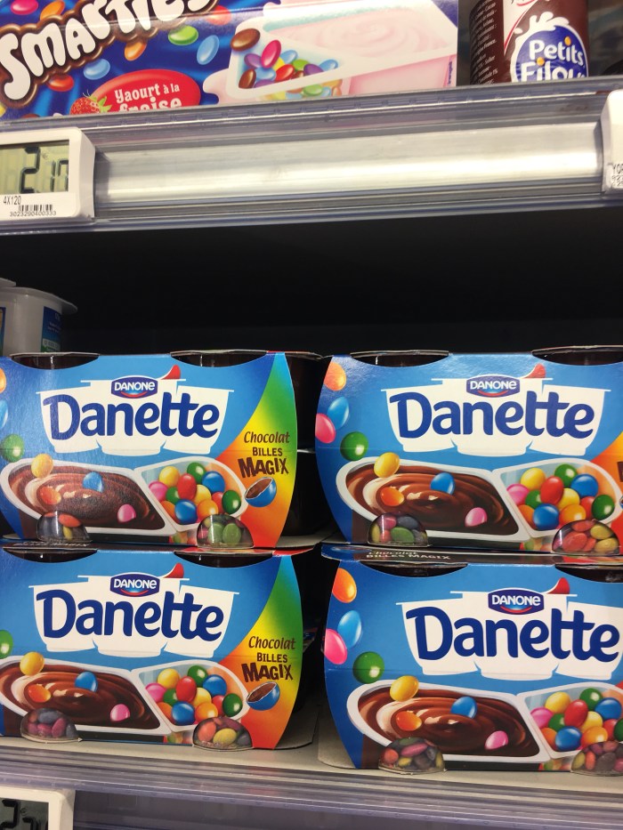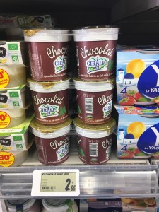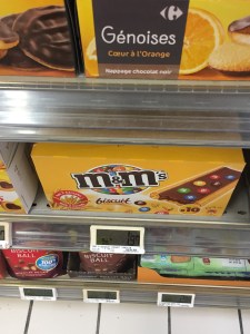 On yesterday’s visit, I was amused by the absolute love of all things Chocolate, yoghurts with Smarties or M&M’s in, or the rows and rows of various dessert pots, all chocolate ! Or the biscuits, again with Smarties/M&M’s or the ones coated in Chocolate rice crispies! And the British Government is concerned about childhood obesity, I wonder if there is such concern here in France, if not, there should be!