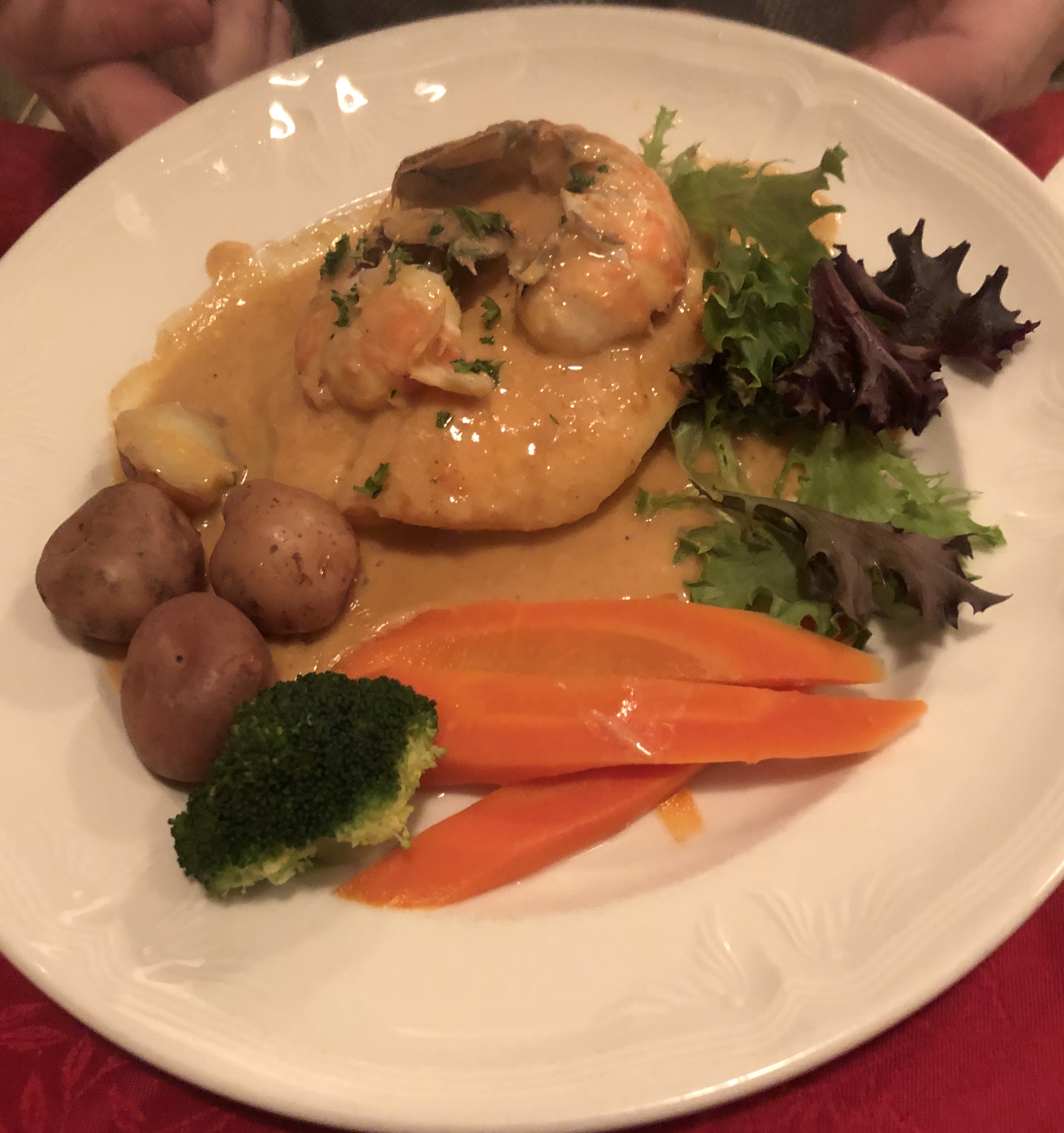 What else to have ? Well, I love Scallops and know that some of the others do as well. Right that takes care of starters, sautéed scallops with crisp pancetta and some Panko covered shrimp on a bed of leaves! Ah stop! Son in Law, allergic to shell fish, right, plan b) for him it is baked goats cheese on sourdough toast with the yummy deep pink ice cream that is Beetroot ice cream. Onto the main event. Well roast beef, with a rich sauce, made with onions, port, dijon mustard, worcestershire sauce and blackcurrant jelly, UMM! along with baked potato skins filled with cheese mash, braised red cabbage, French beans. Ah Ah, maybe not every wants beef, so another plan b came into force, a Salmon Coulibiac ( a kind of Salmon Wellington) was also made, along with a beurre blanc sauce, and maybe something else should be an alternative, YES! Biriyani Rice, chop an assortment of vegetables, cook the rice, sauté it in wok along along with curry spices, add the vegetables, umm umm the smell is Devine.