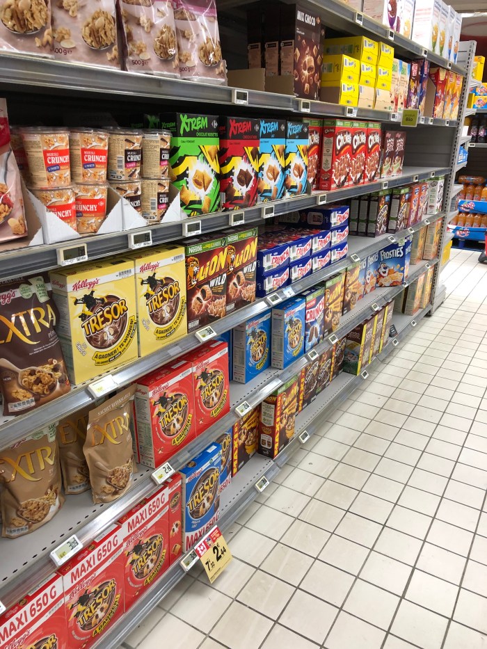 My Swiss neighbours pulled a face saying ” il y aura du Monde! ( very busy) but we know better, nothing will deter our French from taking their 2-3 hour lunch break and as a consequence, the store was almost half empty. Even the shelf fillers were no where to be seen. At 13.55 they appeared lugging or pushing the shelf filler equivalent of a Pantechnicon , just the right size to block the aisles, but Hey they have a job to do, forget the shoppers, it is Reveillon!
