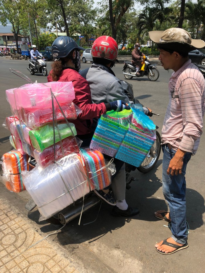We also visited the towers large market in Saigon, where ” Everything is Fake”. We were accosted on all sides by vendors, selling every from designer clothes, to shoes, to handbags, to watches! There were some real things as well, namely the crabs and the fruit. Again we did not buy!
