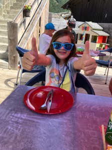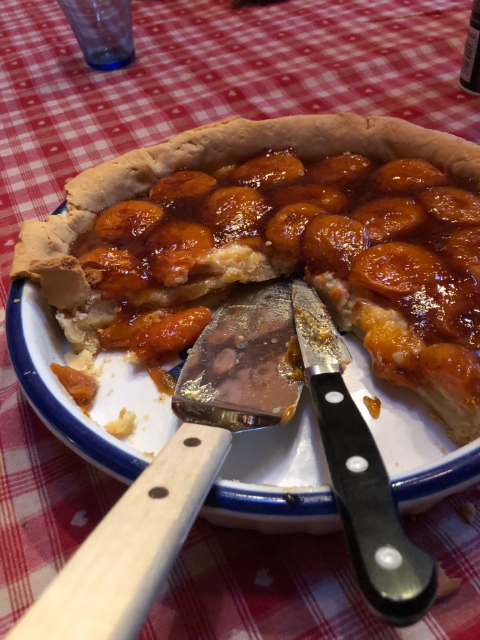 Funnily enough, the following day we went to the Zip wire park and whilst the little ones were zooming through the trees, I sat and watched from the nearby cafe. The special of the day was Apricot Tart! Later on we took the kids to La Grange for dinner, where Miss Tess, had the Abondance tart for her main course, Chocolate fondue ( she shared this with Himself) for dessert, But the special of the day was ? Yes Apricot tart !