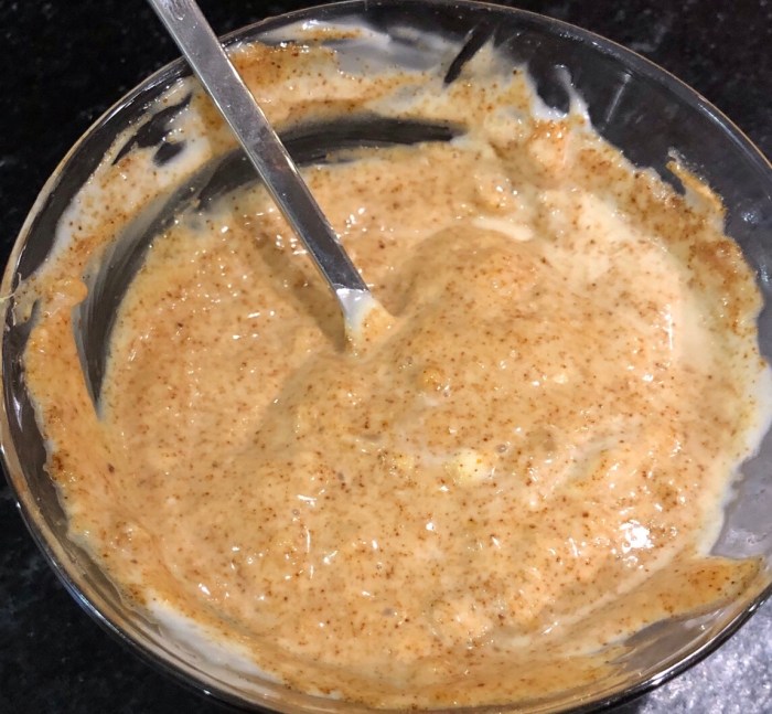 And my sauce has a small garlic clove, smashed to paste, and a squirt of Sriracha. I find it’s best to let it sit an hour before serving to mellow.