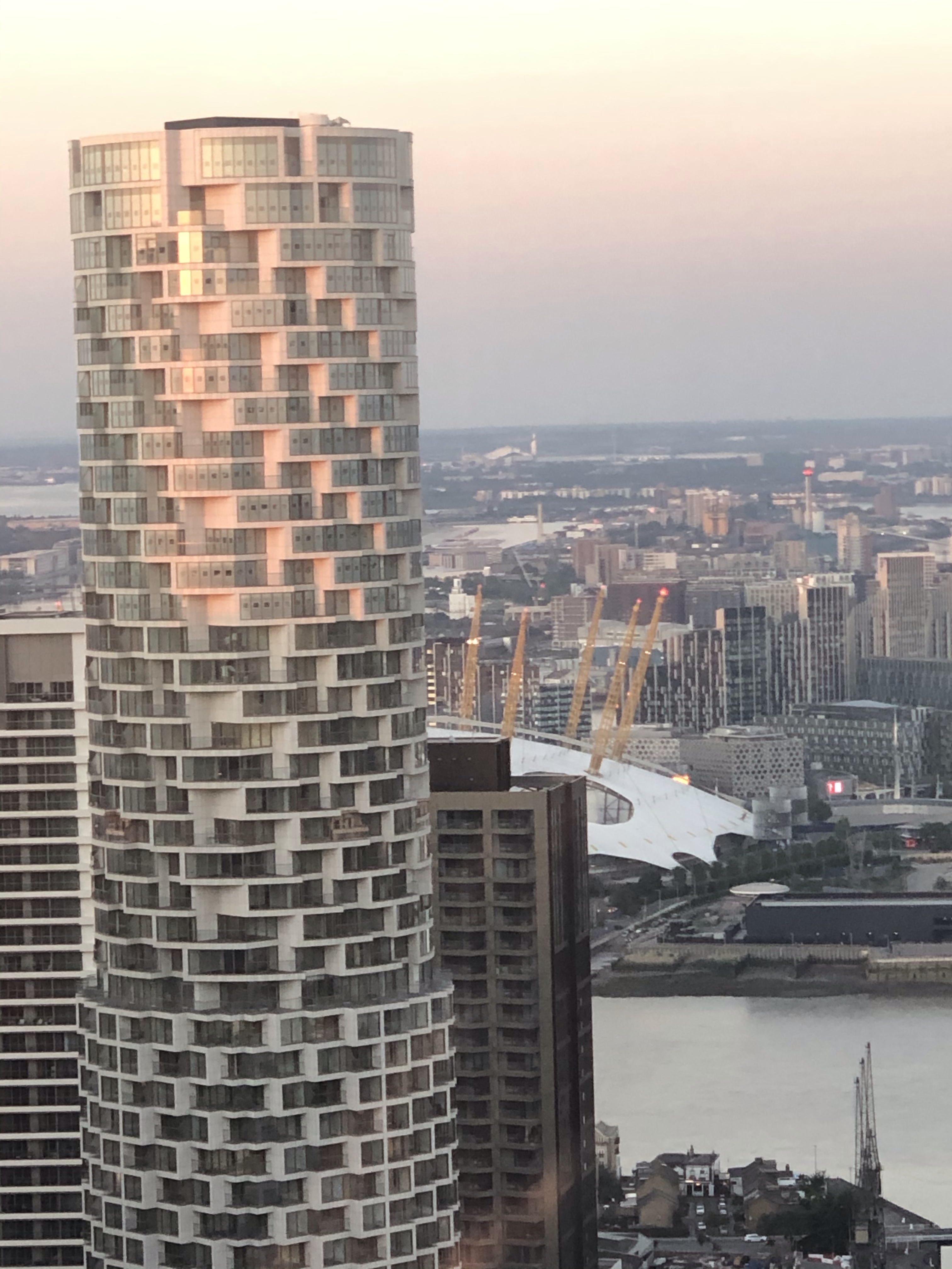 So, up on the 53 rd floor we were greeted by a concierge and a barman, cocktail given and out onto the wrap around terrace and Oh ,what views, maybe I could live in a penthouse on the 53 rd floor, but then again, maybe not. Every couple of minutes one could hear a train, be it a real train as in the London Overground, or C2C or Thames Link or the Underground as in the Jubilee Lone, or even the Docklands Light Railway and this is the one that truly trundles between such interesting named places such as Mudchute, Island Gardens, Poplar, or Pontoon Dock, or perhaps one of the River boats and River Taxis that chug up and down from Westminster to Greenwich.