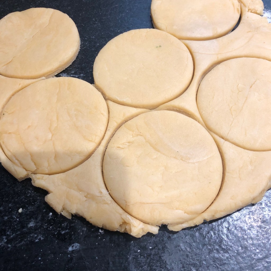 - Put the flour, butter, salt into a food processor and process, the butter will go clunk, clunk for a few seconds and when it stops clunking, switch off, the mixture will look like bread crumbs. Switch on and pour in the water/ egg, and again it will clunk and the mixture will form roughly into a ball. Tip out onto a floured surface and knead gently until it is fully combined and get ready to roll it out.
