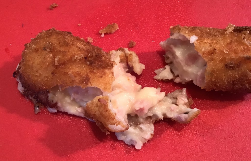So, I also had a small cooked ham which also needed using. The Aligot was really thick, Croquetas sprang to mind! Perfect!