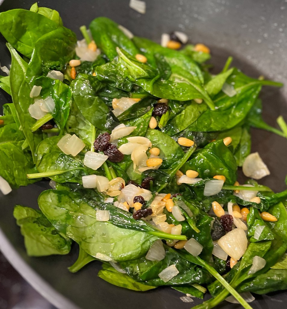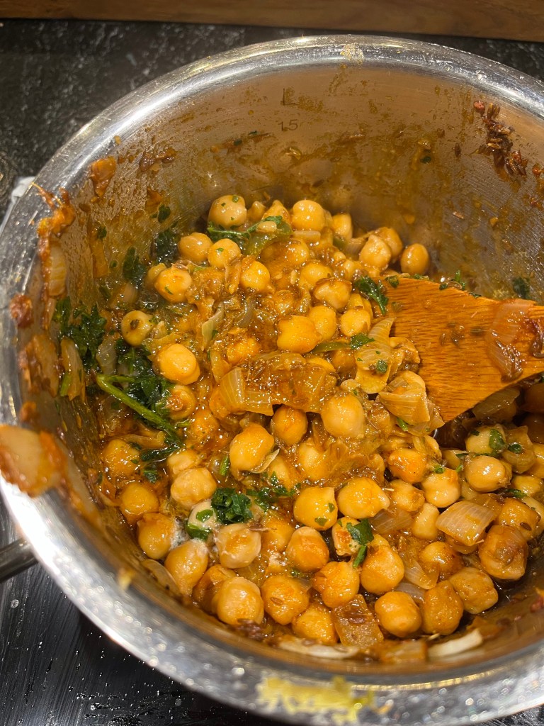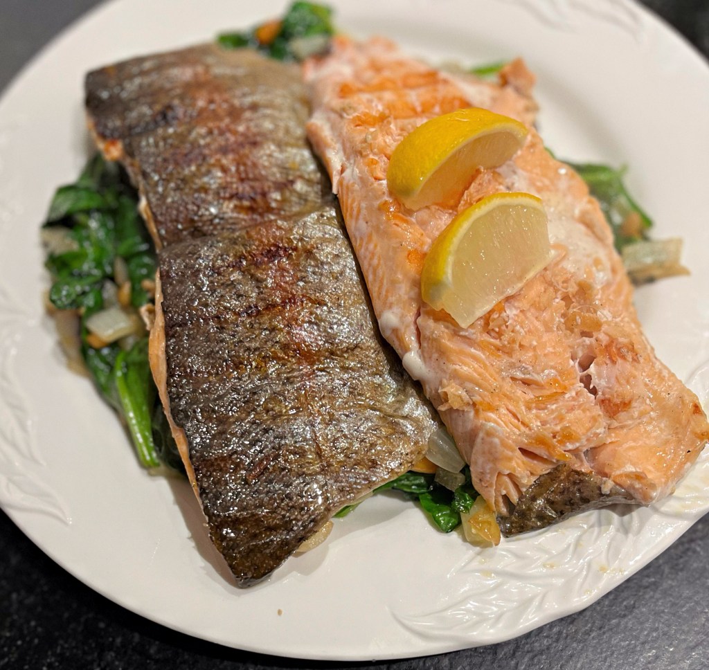 When the fat side was really done and crisp, I removed them from the pan and let them rest a while on a plate, but in the meantime I made a sauce. This was very simple and almost cheating. Into a clean saucepan, I put a couple of tablespoons of fig jam, then added a good swish of port, and a dash or two of some cassis. Heated the mixture slowly on the stove top, stirring to marry the ingredients together. When well amalgamated, put to one side until ready to serve.