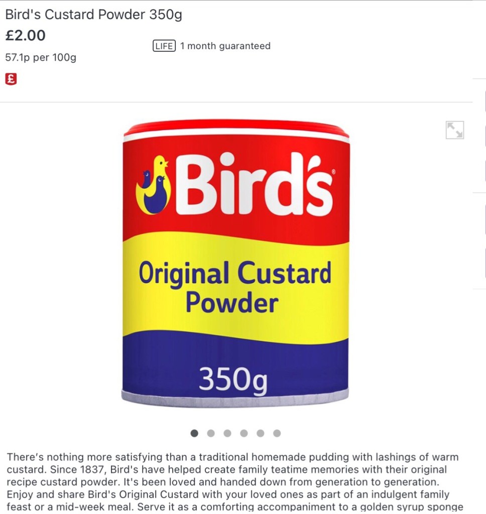 It was only as an adult that I realised that Lemon Meringue Pie could be made without a packet mix ( available on Amazon) and that Custard had another name ( Crème Anglaise) could be made without a product called BIRDS CUSTARD POWDER! Today, it is once again all change, ready made pies and tarts along with ready made sauces and custards. Having scrolled through an online shopping list, I am actually amazed at how many, mixes and ready made cakes/ pies are available, but weirdly No Lemon Meringue Pie mix!