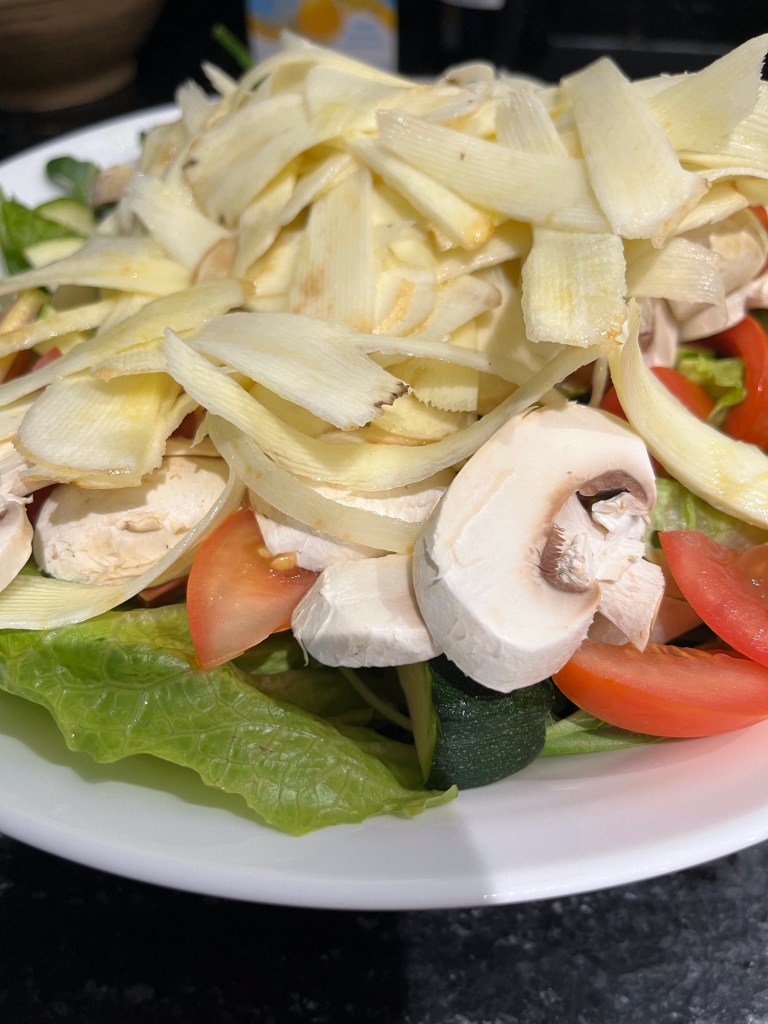 Parsnips can also be eaten raw and in a salad. Again, using a vegetable peeler make strips of parsnips and half of them in a bowl with lemon juice and leave to soak for about 45 minutes. The other half deep fry, or as above crisps in the oven. Use these parsnips along with lettuce, rocket ( arugula) some chopped nuts, maybe some olives and some feta cheese.