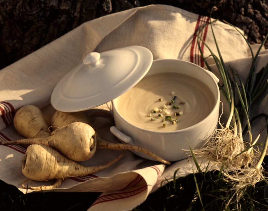 What else do we know about Parsnips? Well they have been around since ancient times, in fact well before we in Europe had Potatoes or sugar, both of which came from the New World, and honey was expensive. Parsnips are sweet and in the past were used in all sorts of ways, simmered in wine with olive oil, enhanced with spices, in a sauce with with celery seed, coriander, stock, raisin wine and oil or even a vegetable sausage, mixed with spelt, eggs and nuts. They are an excellent source of Vitamin C and E and of course starch and fibre.