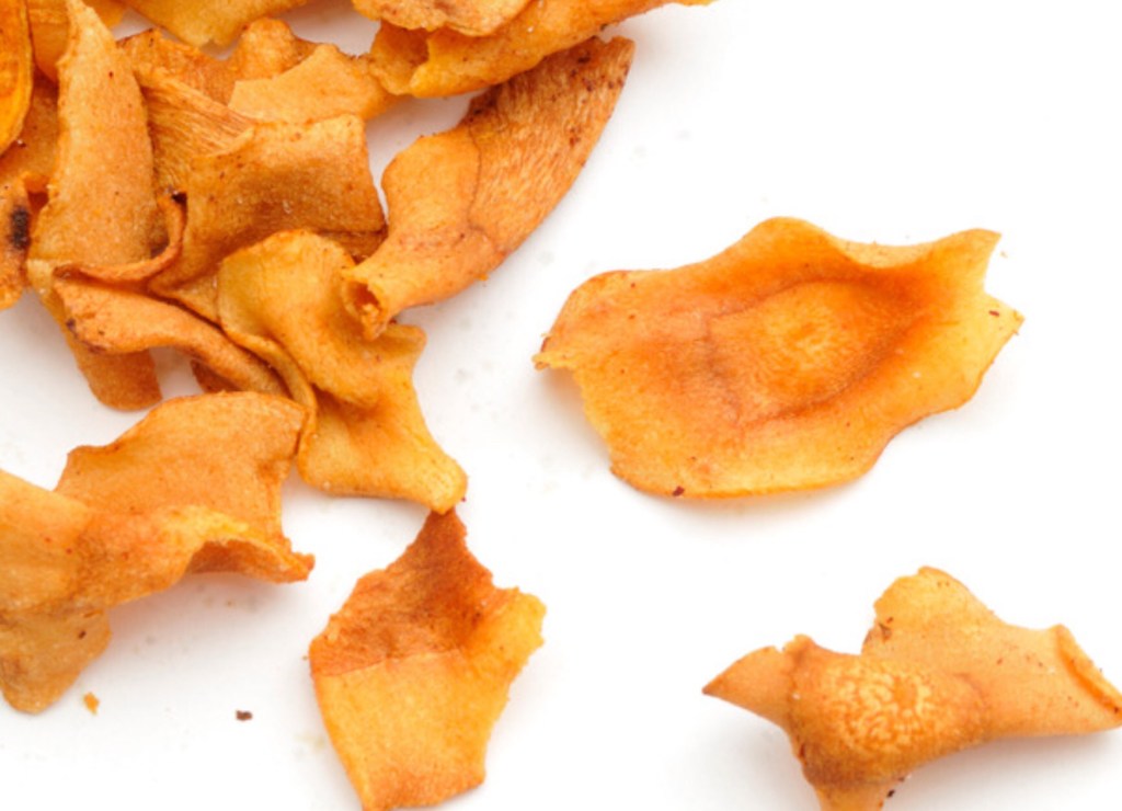 There is no need to peel your parsnips, just wash and dry them. You don’t need very much oil to make vegetable crisps, they need the thinnest of coatings.
