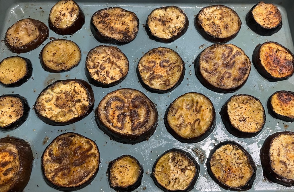 I had wanted to use some Aubergines and consequently had 4 largish ones sitting in my refrigerator saying “USE ME”. I like deep fried ones, but seriously they scream Calories ! What about Moussaka? For me it says, shepherds pie, or lasagna, neither of which I am interested in eating, or Aubergine Parmigiana, yummy ! But oh so calorie rich!