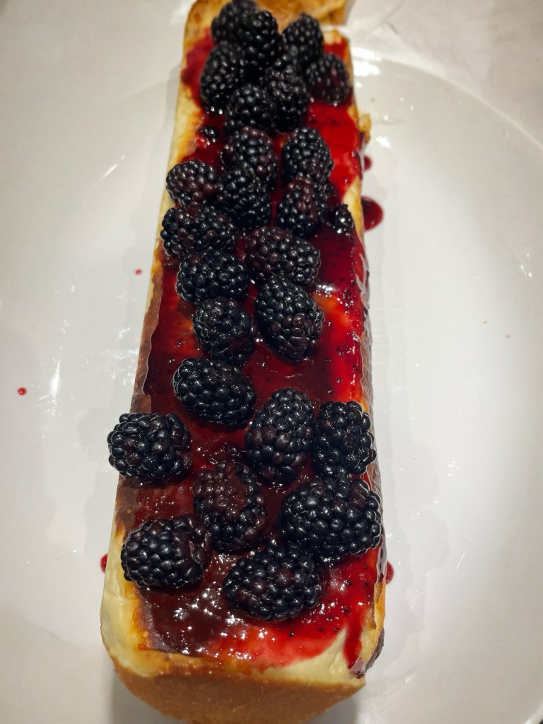 I did go a bit overboard with desserts, it is something I only do for guests, so I made a burnt basque cheesecake ( in a long tin for ease of serving)with blackberries, chocolate and coffee semifreddo,mixed fruit crumble with crème anglaise, passion fruit ice cream and brandy snaps.