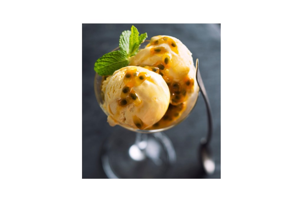 Moving on, I made my ice cream. When passion fruits were very much in season I bought several and kept the pulp which I froze until ready to use. I always use Ben and Jerry’s basic recipes for making ice cream and this time was no exception. According to Ben and Jerry ( they are real people) the list of fruit ice creams is pretty endless, with Banana having no added sugar to apples and raspberries needing a fair amount. However, I would go with the basic and have a taste ( what a good excuse) and add more if it is too tart. They didn’t actually have a passion fruit recipe, so I had to wing it, starting with a sweet cream base. However before you start switch on your ice cream maker if you have one to make sure it is cold OR have a container in the freezer also that it is cold.