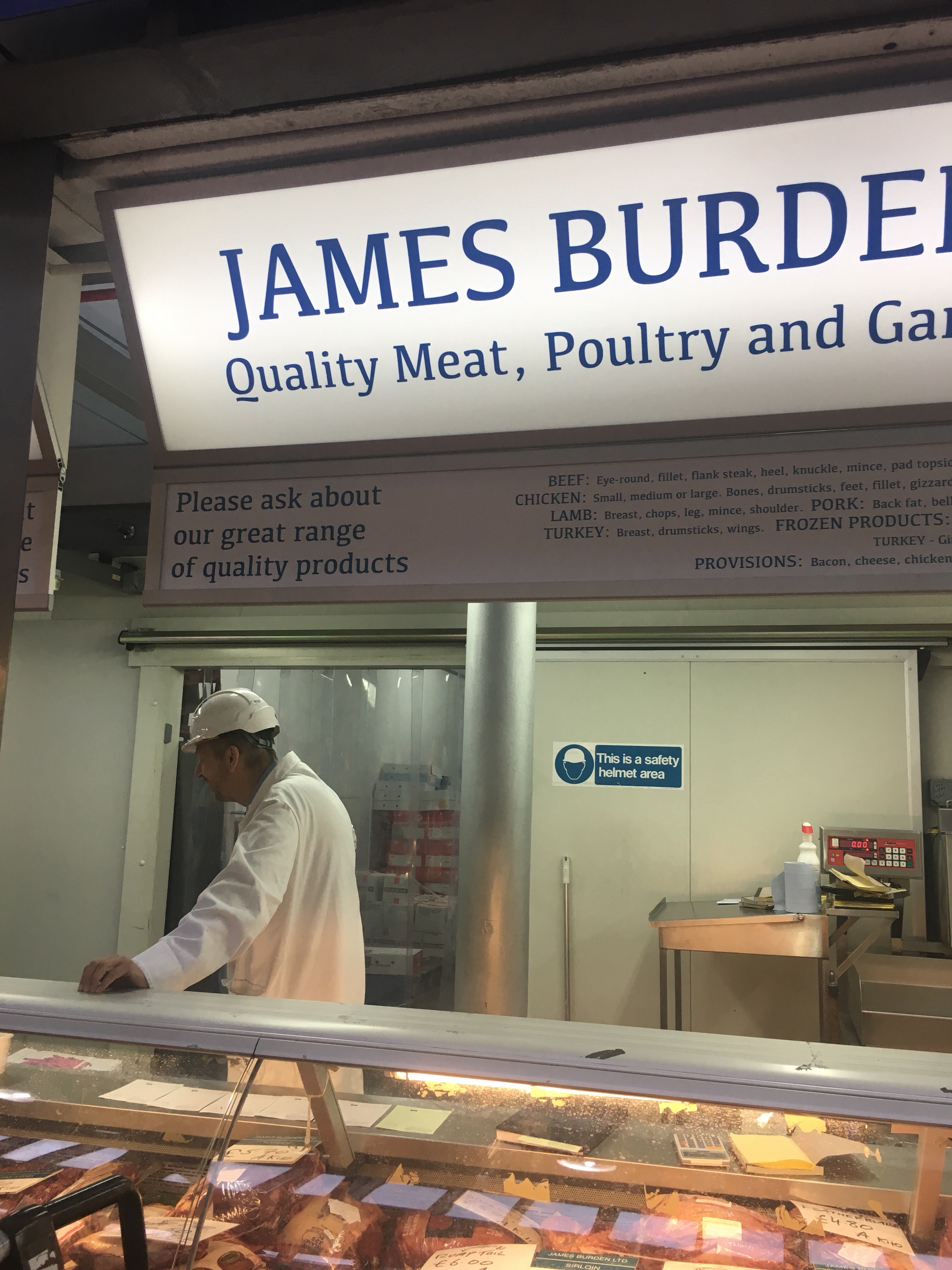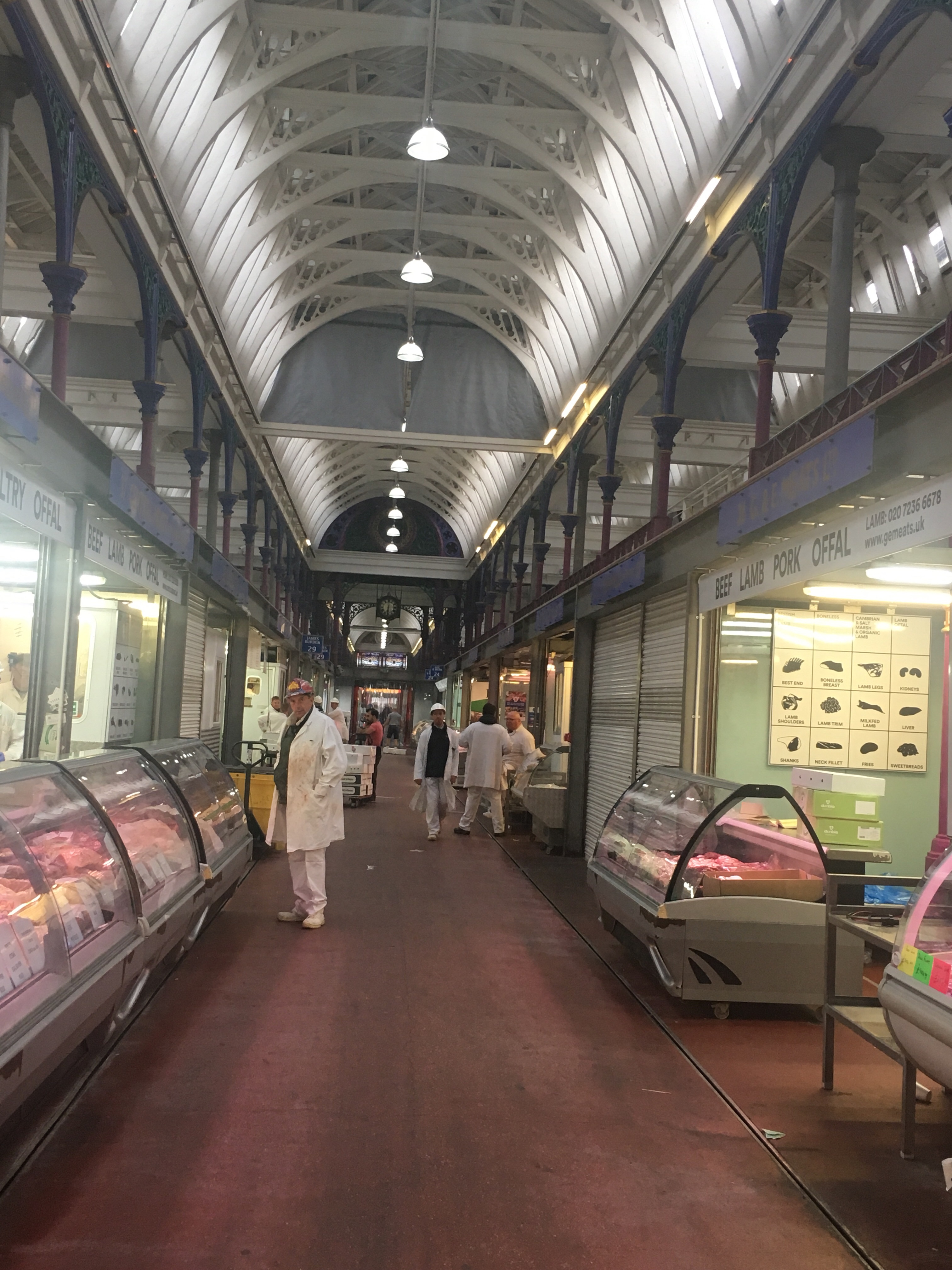 A couple of weeks ago, we had a Pre Christmas Dinner chez Nous. Amazingly all were available and so to plan our meal. We decided to visit Smithfield, the London Meat market. but one has to go early, so off we trotted and were there at about 5.30 in the morning, but even so some of the traders had already left for the day. But what fun, oodles to choose from and the traders that were still there, all to a man ( and woman) were jolly.