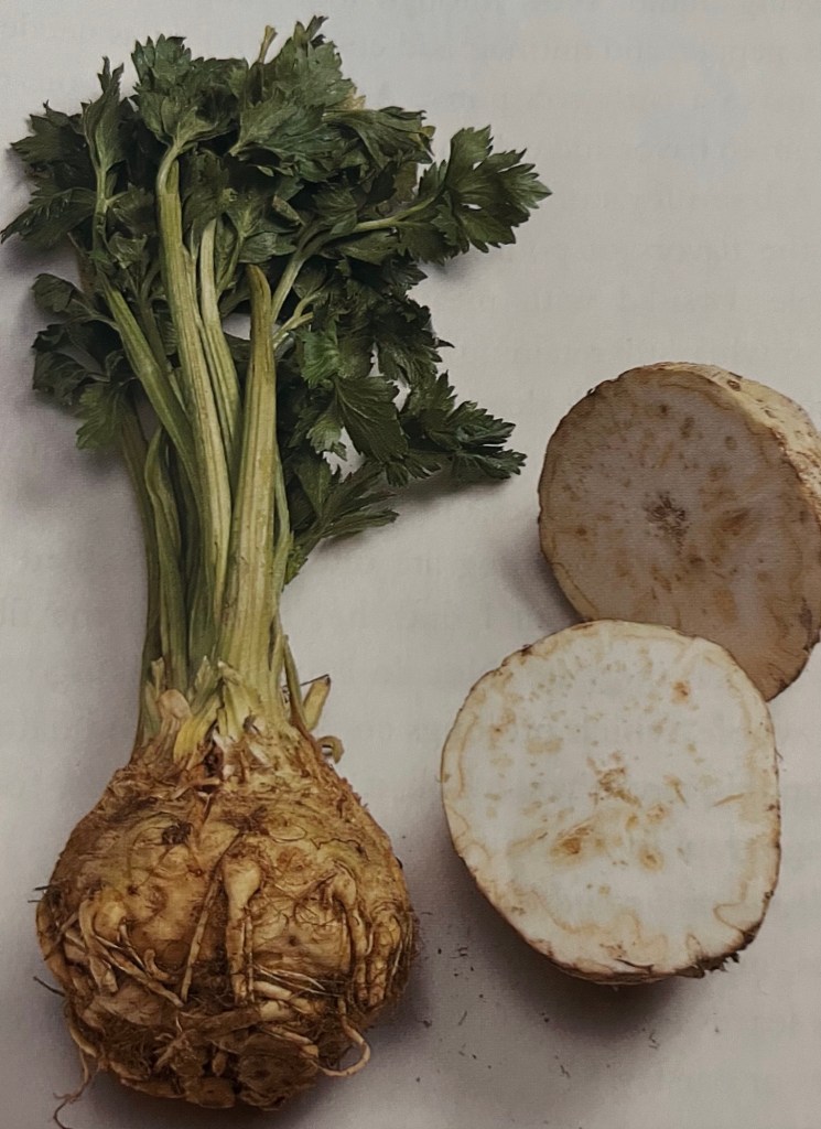 I wrapped the celeriac in Cling film and microwaved for about 7 minutes before cutting off the outer layer and slicing it and putting in the oven with the butternut squash.