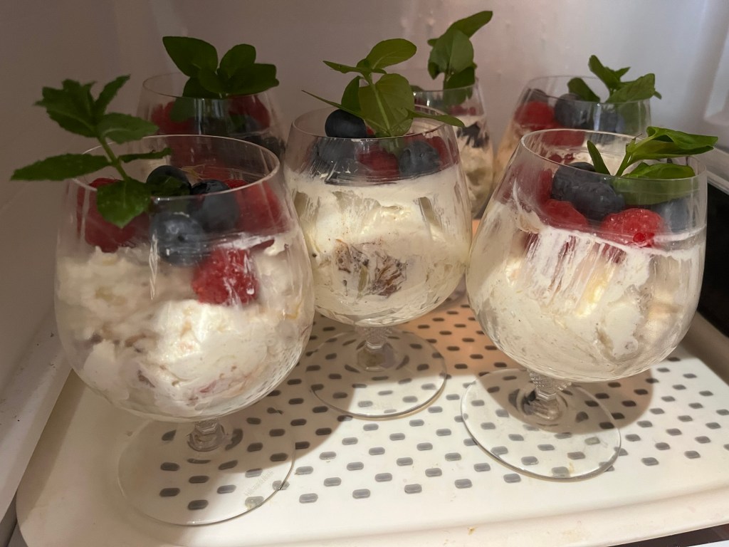 My FESENJAM ( aubergine dish which I made a few weeks ago) is safely stored in the freezer, along with dishes of buttered mashed winter root vegetables ( carrots , Swede, turnip, celeriac, parsnips). Passion fruit and mango ice cream, likewise has been made and obviously frozen. Another must for Himself and son in law is a crumble, it varies with the seasons, and this one is no different, being made with plums, apple and frozen mixed berries. This too is frozen ready to go.