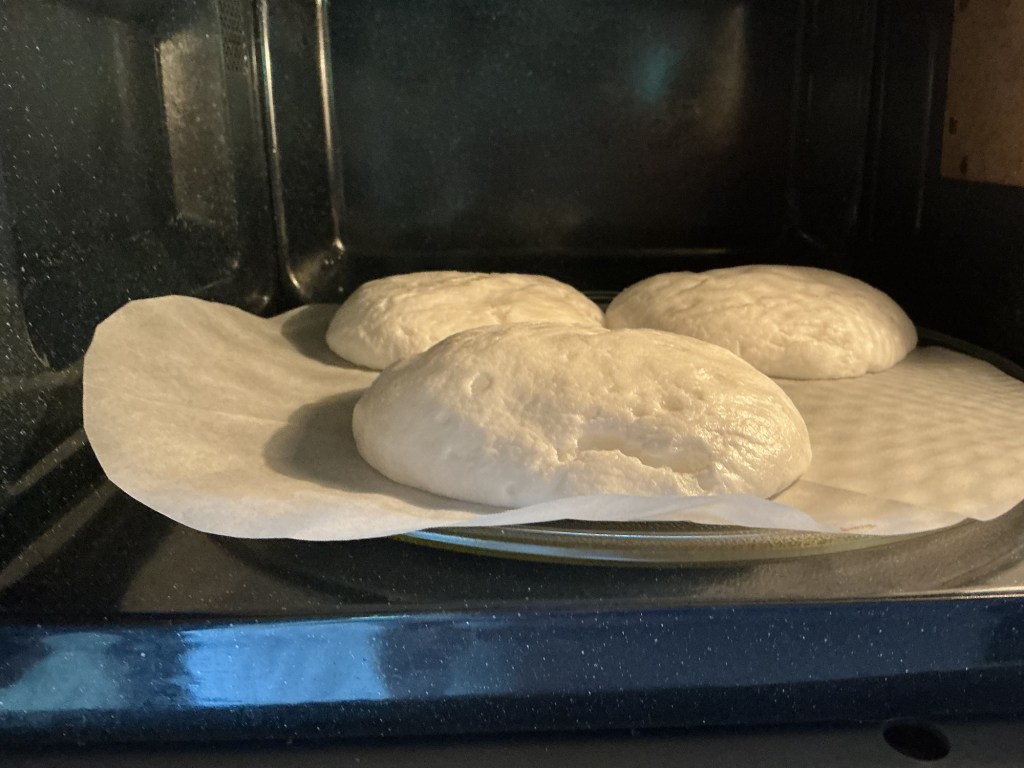 Line a baking tray with greaseproof paper and drop 4 Teaspoons of the mixture at intervals along the tray. Smooth out into a circle with the back of the teaspoon.