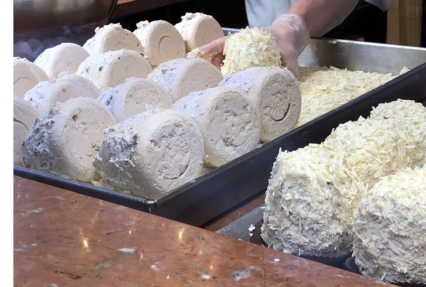 They sold but two items, Les Merveilleux in ( 5 flavours) and Cramiques in three, (and maybe a croissant or two. )We felt we knew the Cramiques , a cross between a Brioche and a sweet roll, very popular in Belgium for breakfast ( and we had lived in Brussels for 13 years and thought we knew, all that was needed to know), but Les Merveilleux, we hadn’t a clue. So some were purchased and stashed in the boot of the car for future eating.