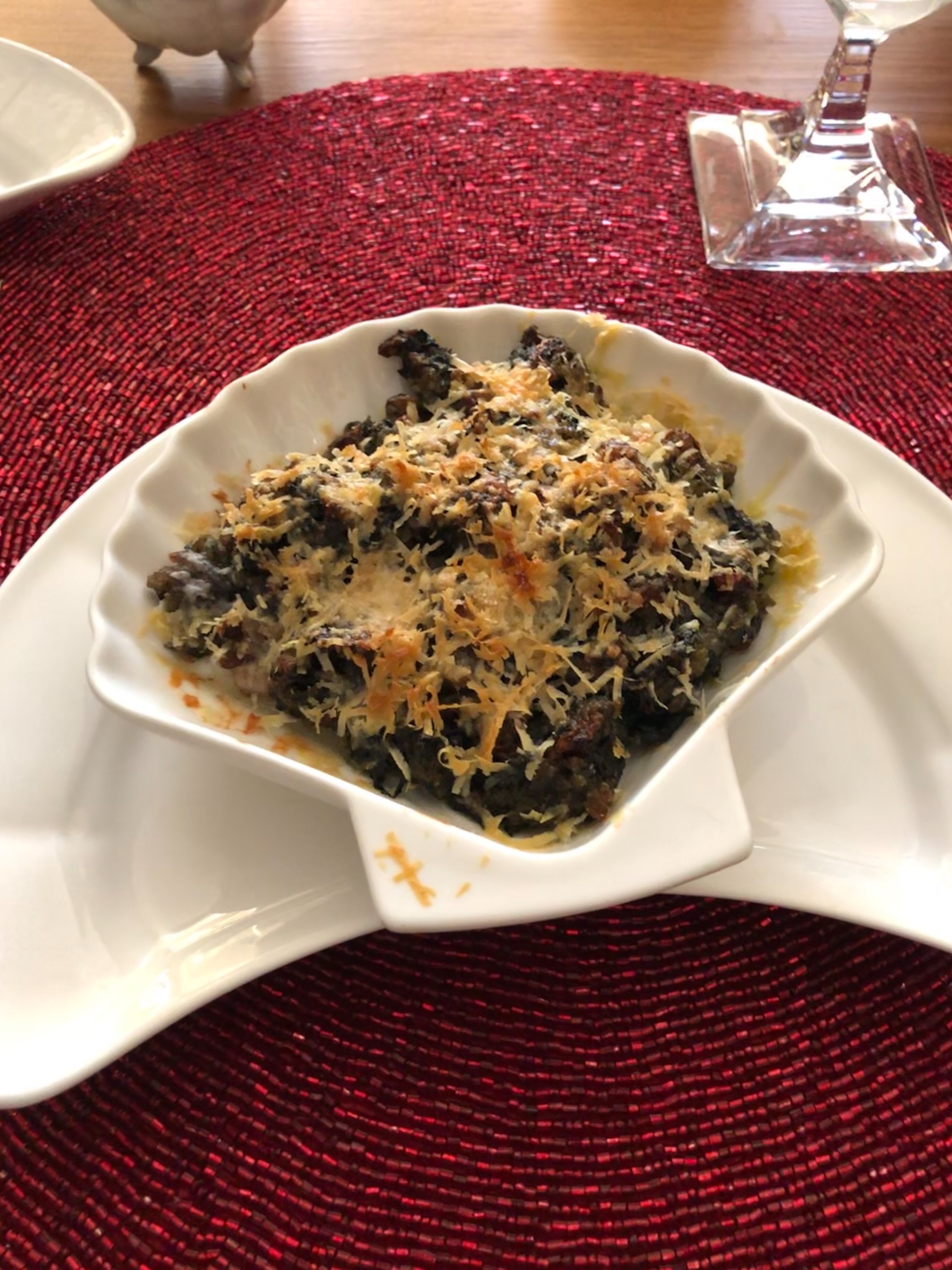 After stockings and presents along with the obligatory Bucks Fizz, Himself did Oysters Rockefeller and to save time we used frozen oysters, and they worked very well, just think how long it would have taken to shuck 30 oysters!