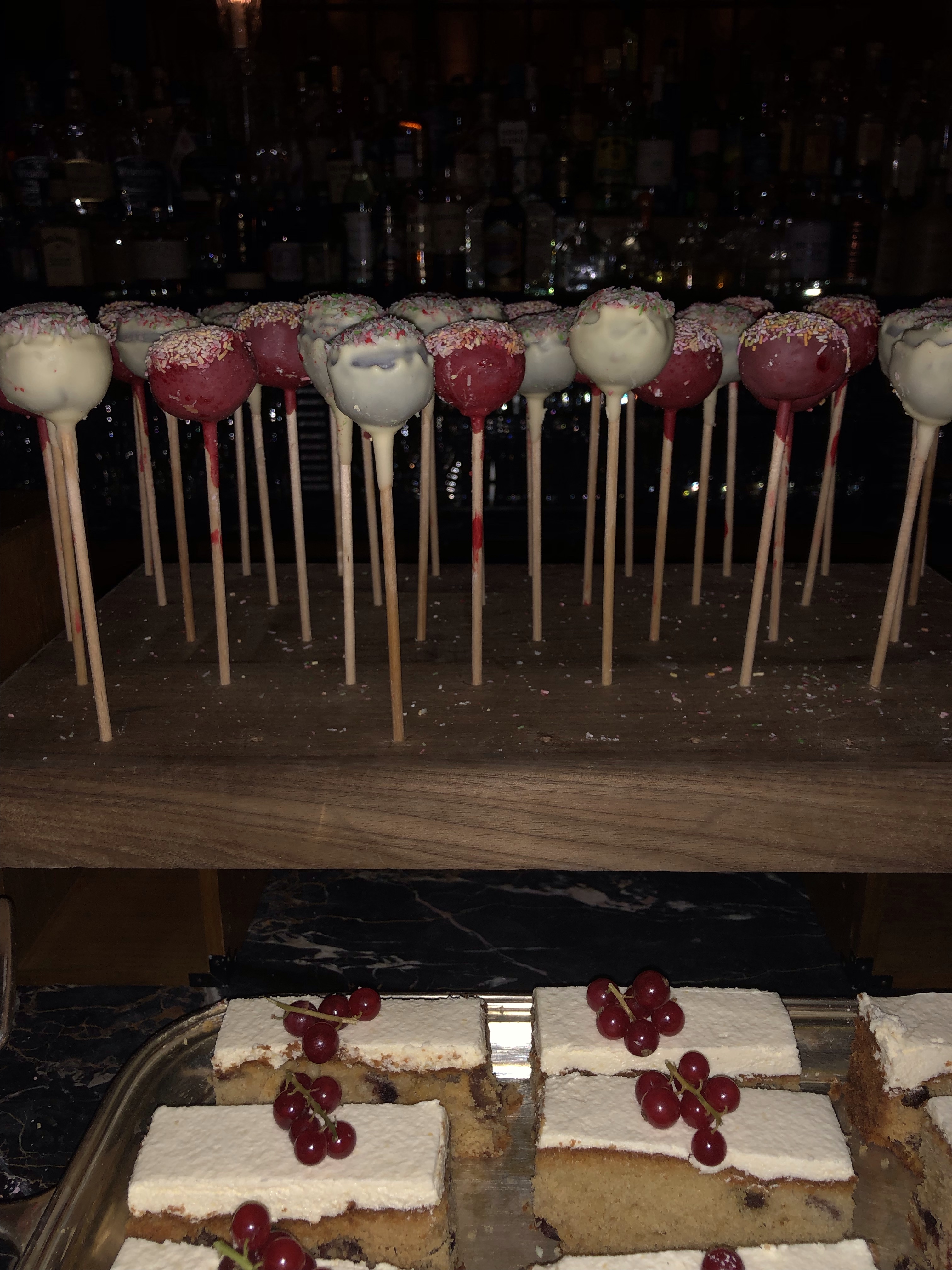 The buffet was in fact amazing, ranging from cold meats and salads, to lobsters, shrimp, smoked salmon, grav lax, to hams, turkey roast beef and of course turkey. Then there was the dessert table, which had an assortment of cheeses including a huge Stilton and Mont d’Or ( one of my favourites ) and of course sweet stuff, strudels, mince pies and the most wonderful little cakes on sticks. I ended up eating one of these just convince a gentleman that they were safe to eat, he was dubious but as he said, he didn’t like to try things that were different! ( Not sure why he had come here)!