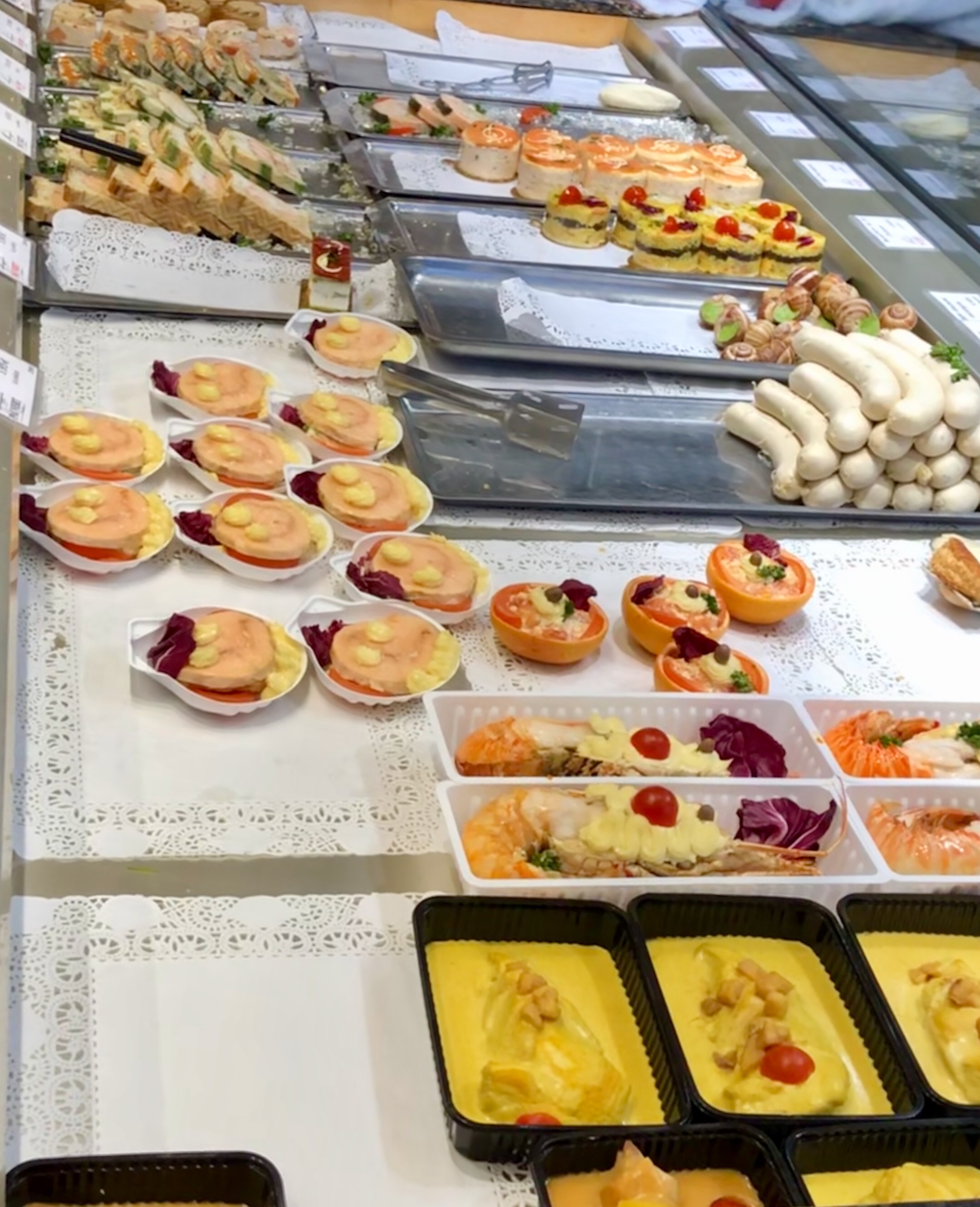 The other a Traiteur, no not a Traitor but a smart, I suppose Take Away, not sure that they really exist in the UK. Usually very smart and expensive, salad of Gambia’s €49 a kilo, but always doing a roaring trade, so that which is not readily available on the market, will be found here. Not sure I have shopped in a Traiteur, but I always like to look.