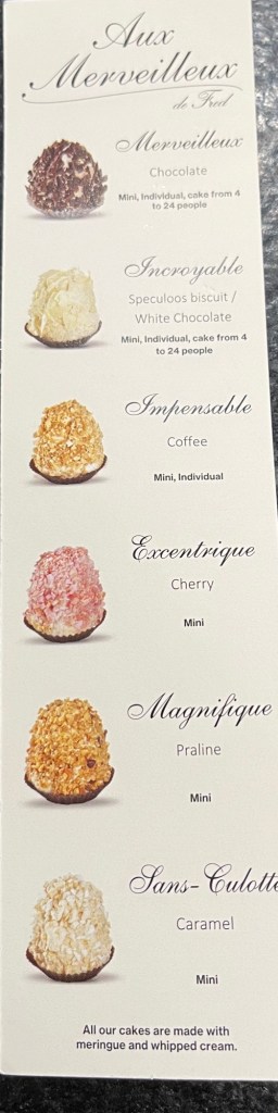 And then we discovered Les Merveilleux de Fred! We bought some of their very decadent delights and set off for Paris. We left everything in the car and to our dismay our Merveilleux had melted! However they are now available in London and in five locations, including the tube station at High Street Kensington! So if you are tempted here is where to find them ! Oh what are they ? They are Meringue and cream ! Not Naughty at all! Naughty but oh so Yummy!
